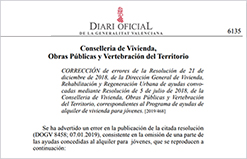 | Corrección de errores de la Resolución de 21 de diciembre de 2018, de la Dirección General de Vivienda, Rehabilitación y Regeneración Urbana de ayudas convocadas mediante Resolución de 5 de julio de 2018, de la Conselleria de Vivienda, Obras Públicas y Vertebración del Territorio, correspondientes al Programa de ayudas de alquiler de vivienda para jóvenes |
