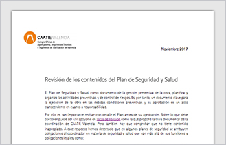 | | | Nuevo documento de apoyo para Coordinación: Revisión de los contenidos del Plan de Seguridad |